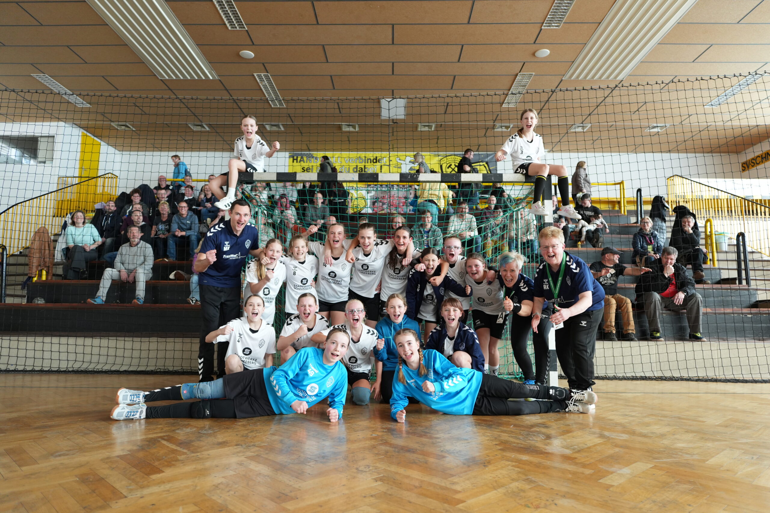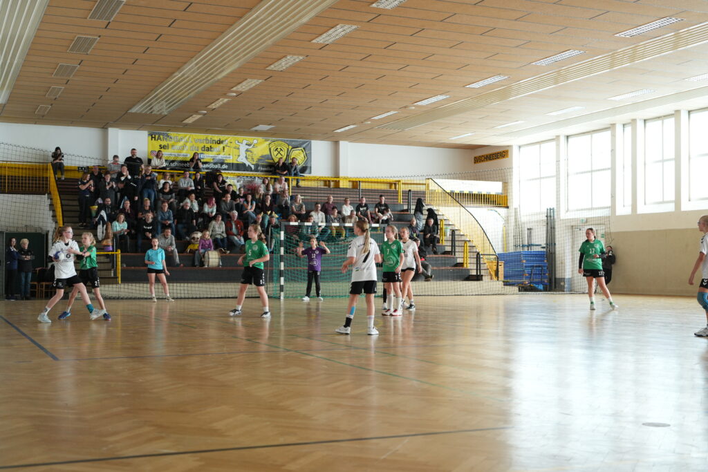 Nach dem Wiederanpfiff zeigte die SG Zschorlau/Schneeberg ein anderes Gesicht. Die Abwehr stand nun sicherer, und mit mehr Tempo im Angriff kam das Heimteam Schritt für Schritt heran. Unsere Mädels verkürzten den Rückstand auf 10:11. Ein vergebener Siebenmeter der Gäste ließ nun zusätzliche Hoffnung aufkeimen. Zwar konnte der HC Fraureuth zwischenzeitlich auf 10:12 erhöhen, doch die SG Zschorlau/Schneeberg ließ sich nicht abschütteln. Die letzten Minuten entwickelten sich zu einem echten Krimi. Nach einer Auszeit des HC Fraureuth erzielten wir die erste Führung für die SG auf 14:13. Doch das Spiel blieb hochspannend. Fraureuth drängte auf den Ausgleich, doch die SG-Abwehr verteidigte leidenschaftlich. Mit zwei weiteren Treffern verschaffte sich das Heimteam einen kleinen Vorsprung. Selbst in der Schlussminute blieb die Spannung hoch – Fraureuth erzielte in letzter Sekunde noch das 16:14, doch unsere Mädels brachten den Sieg mit großem Einsatz über die Zeit. Der Jubel auf Seiten der Schneebergerinnen mit ihrem Trainerteam, den Eltern und Fans war riesig.