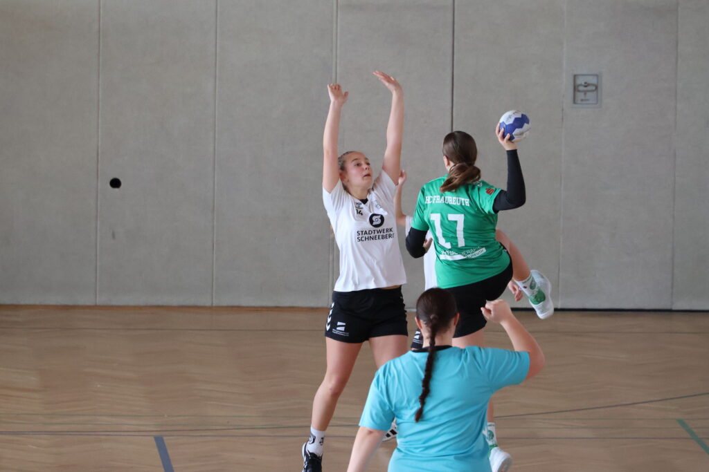 Die Partie begann verhalten, beide Teams tasteten sich zunächst ab. In den ersten zehn Minuten fielen lediglich zwei Tore, beide zugunsten des HC Fraureuth. Die SG Zschorlau/Schneeberg tat sich schwer, ins Spiel zu finden und nahm früh die erste Auszeit, um den Spielfluss zu verbessern. Doch Fraureuth setzte weiter auf eine konsequente Offensive und erhöhte auf 1:4. Trotz eines verwandelten Siebenmeters blieb der HC Fraureuth tonangebend und baute die Führung auf 5:9 aus. Kurz vor der Halbzeit verkürzten unsere Mädels noch auf ein 6:9, doch insgesamt musste die SG Zschorlau/Schneeberg mit einem Rückstand in die Pause gehen.
