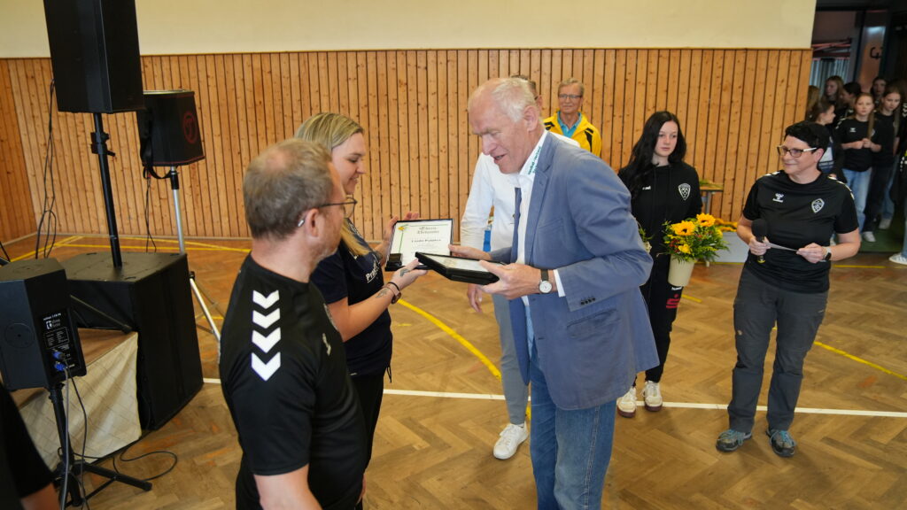 • Ramona „Ramschi“ Kehr, Trainerin unserer D-Jugend, erhielt die HVS Ehrennadel in Gold für ihre herausragenden Verdienste für den Handballsport.